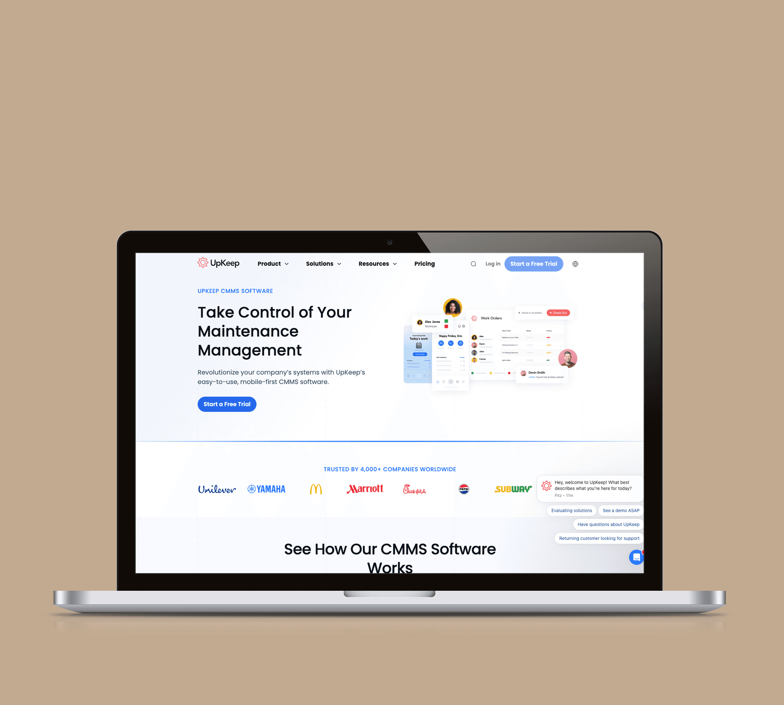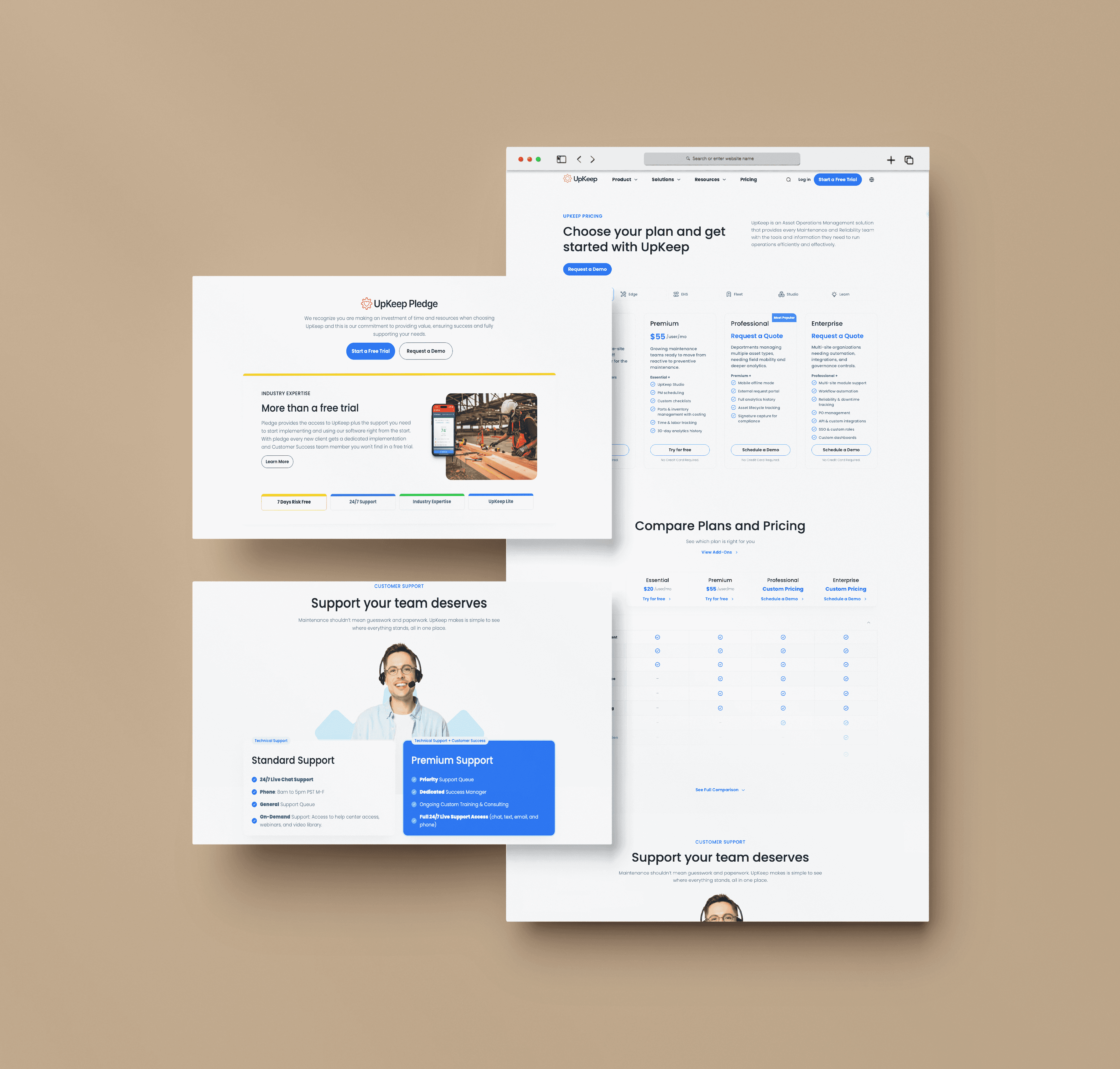 UpKeep's platform addresses a broad range of asset operations needs, including maintenance management, equipment tracking, safety compliance, inventory control, and IoT integration. The redesign faced a critical challenge: effectively communicating the platform's capabilities to three distinct user groups with different priorities and pain points. Maintenance teams needed clarity on how the platform would reduce administrative overhead and streamline workflows. Operations leaders required reassurance that the system could provide real-time visibility and prevent costly downtime. Reliability engineers needed to understand how the platform could scale across multiple sites while handling complex asset lifecycle management. The core problem was presenting a comprehensive, feature-rich platform in a way that felt intuitive and directly relevant to each audience, without overwhelming them with comple